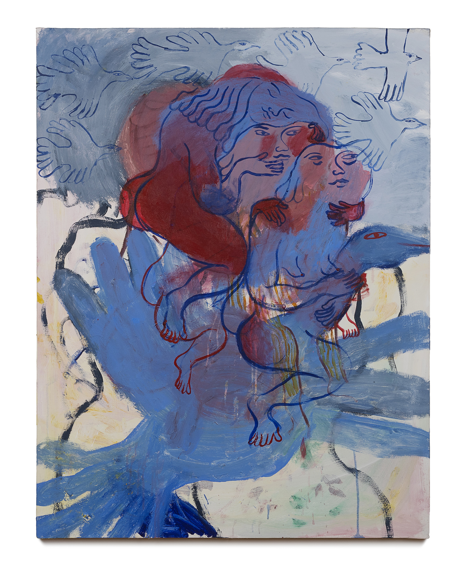 Blue flight, 2025, acrylic on linen, 111.6cm x 86cm. Image by Andy Bate.