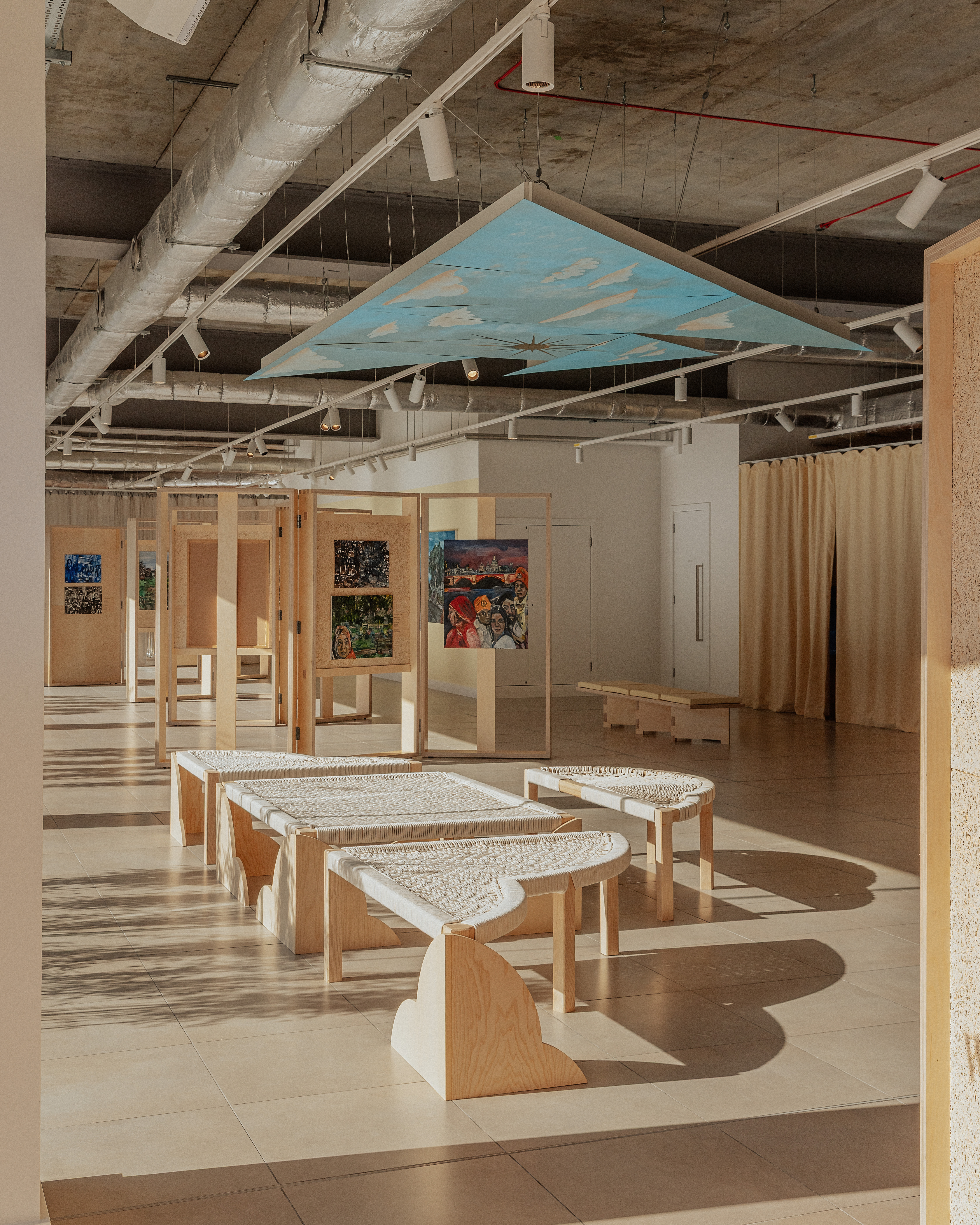 It's always a process and choosing a method is part of that. Especially as a researcher, I prefer process over final product. Don't get me wrong, the final product is always really beautiful, in this case, the manji, but all of the work that went into conceiving it, all of the weaving, all of the ways in which that manifested is so important. In this exhibition, I wanted to be able to hold space for people without me being there physically and using sculpture and installation allowed for this. With food, it's more about activating it in person and a sense of care and ownership happening live. And publishing for me is a legacy work. All of those methods have different functionality, temporalities and time, and different levels of engagement.